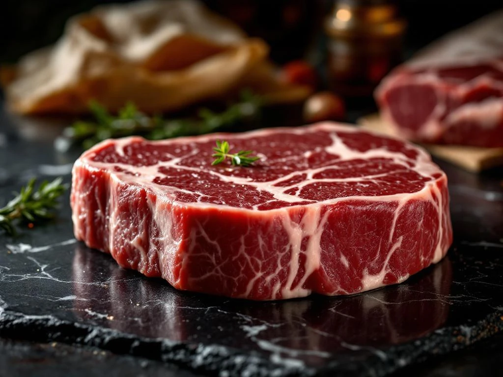 Premium vlees herken je aan verschillende kenmerken op de verpakking. Marmering, de fijne vetadertjes door het vlees, is zichtbaar door de verpakking en wijst op smaak en malsheid. Op het etiket vind je informatie over speciale rassen zoals Wagyu, Aberdeen Angus of Rubia Gallega, die bekend staan om hun uitzonderlijke kwaliteit.